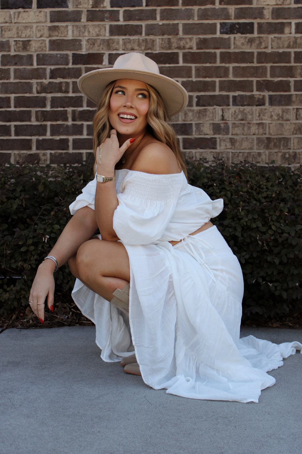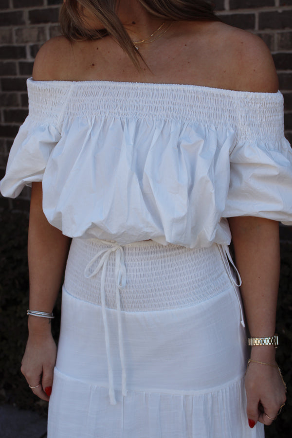 The Woven Cotton Smocked Off The Shoulder Top